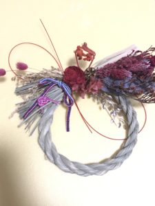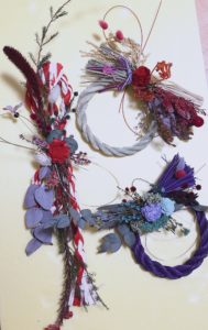いろんな形や色のしめ縄にワイルドフラワーでアレンジしていただきます。