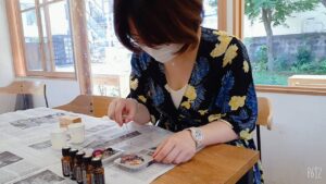 アロマやお花を袋に入れたりワックスを溶かして入れたりして香りを楽しみます