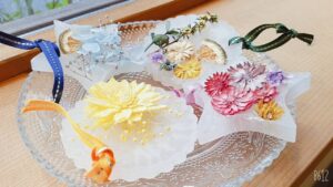 アロマやお花を袋に入れたりワックスを溶かして入れたりして香りを楽しみます